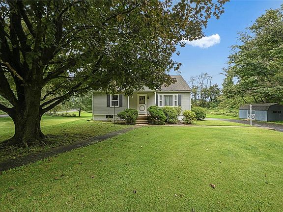 Multiple Offers HIGHEST AND BEST by Monday 5pm 9/25 please. Preferred closing date 10/31/23. Love at First Sight? Even before you get there you will adore the country drive, complete with covered bridge. This adorable cape cod on a 2+ acre property complete with small stream, wooded area, and a 24ft x 24.5ft metal building plus additional storage shed all with beautiful views is irresistible. The home invites you into a large living room with open stairway to second floor bedroom area large enough for multiple uses, two first floor bedrooms and full bath. There's a large eat-in kitchen and covered back porch perfect for grilling in all weather. Take advantage of the move-in condition, updated black appliances, loads of countertop space in kitchen, updated electric service making this home from the past is a charming home for your future. Great features include a wood burning stove connected in the HVAC system for auxiliary heat. Generator set up ready to plug in. Full basement with outside entrance providing tremendous storage or finish in the future for additional living space. The incredible property has large open yard that you'll spend endless hours enjoying the view. Make this home whatever you want it to be and enjoy your future here. Don't hesitate to schedule your appointment for this one. Open house Sunday 9/24 from 1-4.