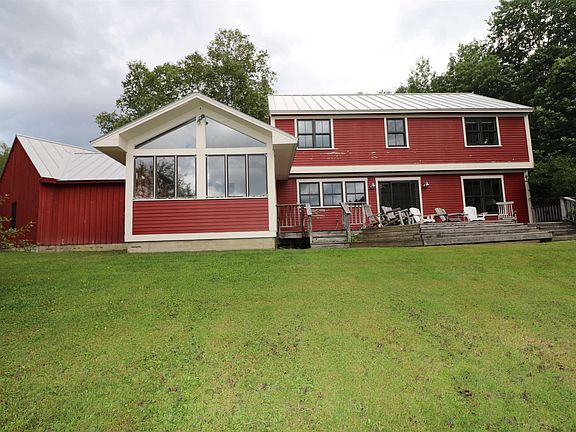 An ideal retreat in the heart of the Green Mountains. Located in East Warren, boasting Westerly views of Sugarbush, this home has it all: privacy, open meadow, apples trees, seasonal brook and a really great home featuring modern kitchen, wood flooring, rustic beams, French doors, large deck and much more! Cozy up to the brick fireplace in winter and enjoy the windowed sun room. Practical mudroom entry, oversized 2-car garage, standing seam metal roof and efficient HWBB heat. Primary bedroom with private bath offers incredible views. Close to Blueberry Lake recreation trails. Offered furnished.