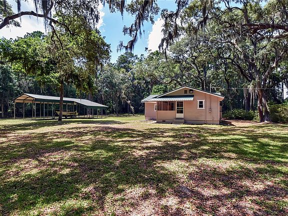 Nestled in the heart of Shellman Bluff, this two bedroom/two bath home sits on 3.74 acres bordering the Shellman Hammock Golf Course. Use for your primary home, your vacation get-a-way or possible airbnb. Easy living in this adorable home featuring an updated kitchen with Stainless appliances, spacious living area with gas log fireplace, & sunroom/bonus room or potential third bedroom. Included with the property is a large enclosed storage building (12x24) as well as a metal pole barn (50x24w/ 12ft lean to) large enough for an RV and boat! Sit on the screened in back porch and enjoy watching the deer, birds, and other wildlife. Be at the boat ramp within minutes and enjoy the coastal lifestyle Shellman Bluff has to offer. Restaurants, night life, and much more only a golf cart away!