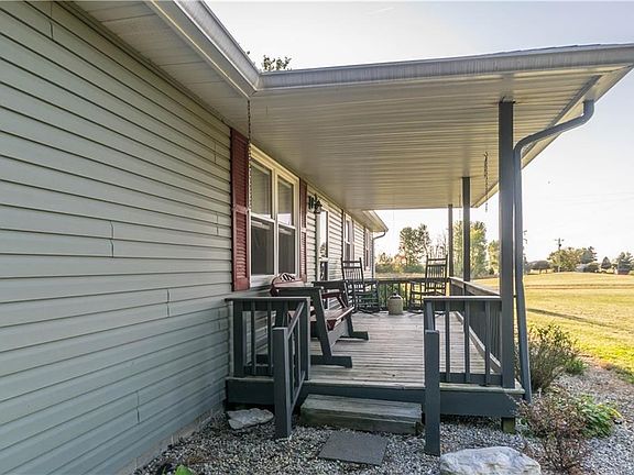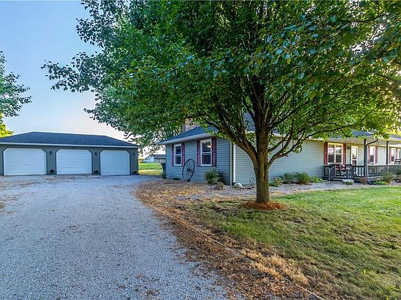 ACT FAST - this property will not last long. Adorable 3 BR/2BA ranch on 2.3 acres in beautiful country setting. Enjoy the sunsets from the peaceful comfort of your front porch. Lovely updated kitchen, wood burning fireplace, remodeled bathrooms, new flooring in living room, new windows installed in 2018. This house has been well taken care of! Outbuildings include 3 car detached garage, 2 large pole barns and a mini barn. Large fenced in pasture is perfect for animals. Stainless steel appliances stay.