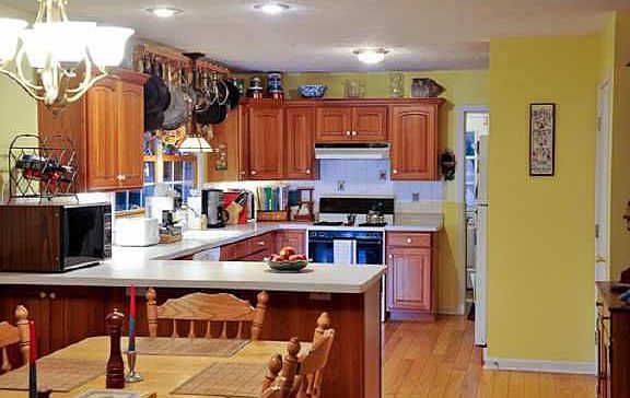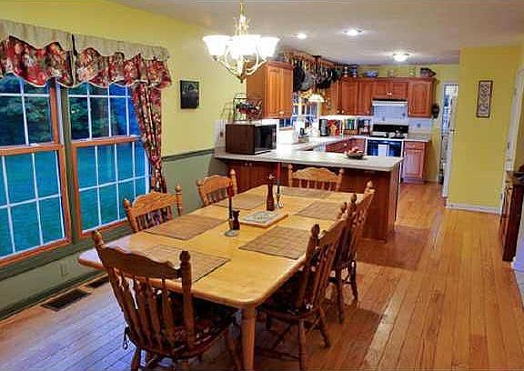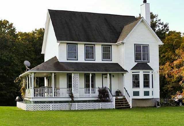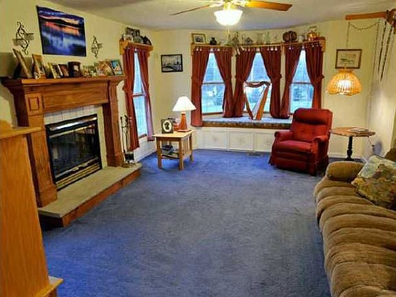 Charming country home w/huge wrap-around porch.Lovely setting.Set back from the road on 4.5 acres.Back of land is wooded.Very generous sized rms.Huge kit w/solid cherry cabinets & XL eating area.Cozygreat rm w/custom frpl mantle.12x12 shed.Approx 3 acres of woods.Workshop in lwr lvl.Dbl door entry to 13 course bsmt.