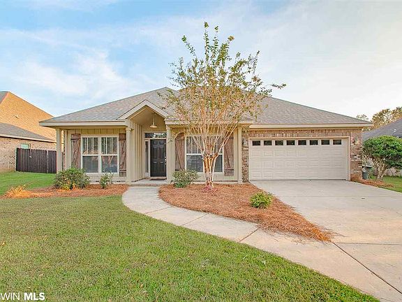 This 4 bedroom, 2 bath home in River Station subdivision is located in cul-de-sac and only 10 minutes from downtown Fairhope and the Mobile Bay. Enjoy all the Mom and Pop stores, restaurants and beautiful landscaping in downtown Fairhope. Go take a walk on the Pier at Mobile Bay or go fishing. This home has a sought after open floor plan, the kitchen has granite counter tops, stainless steel appliances, breakfast nook area, breakfast bar and tile floors. All of the bedrooms have carpet to keep your feet warm on those cold days. Large Master bedroom with walk in closet. Ensuite has granite countertops, double vanity, garden tub, separate shower and tile floors. Outside covered patio area can be entered through the double french doors from the Great Room or Master bedroom. Home is Bronze fortified, roof replaced in April 2020. Privacy fenced in back yard. All appliances and AC are 3 years old. New paint inside and out. You will only be two houses away from the stocked. Make an appointment to see this house today, it won't last long.