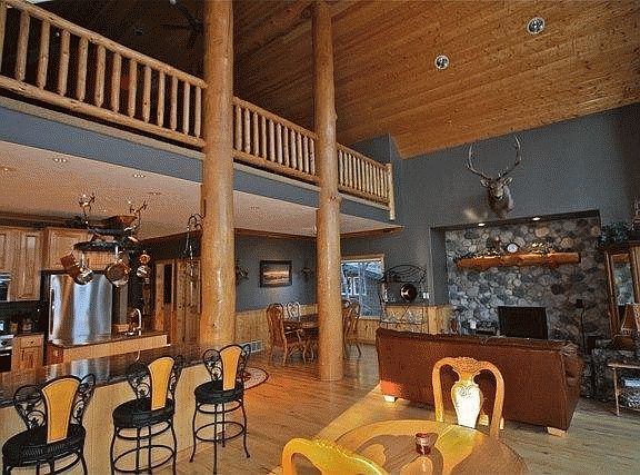 Fully furnished, 3 bedrooms, including 2 master suites, loft, pool table, huge deck, 75' of deep water, double covered dock with oversized decking for lounging, additional deck and cabana near the docks, gourmet kitchen, partial kitchens on upper and lower levels, golf cart distance to two country clubs, 4 fireplaces, cable TV, wireless internet, covered patio off basement level, luxurious finishes throughout, take tram or stairs to water.
