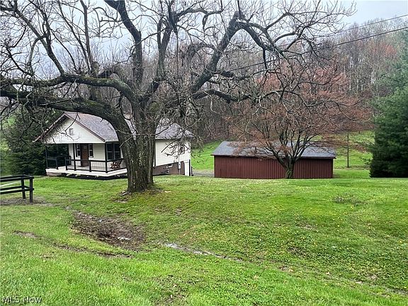 Situated at the edge of town is this recently renovated 2 bedroom 1 bath ranch home with many updates throughout. The home comes with an updated kitchen and the kitchen appliances can stay, there's ceramic tile flooring, new kitchen cabinets, countertops and backsplash and a formal dining room with built ins for more storage. The hardwood floors are in good shape in the living room as well as the dining room, There's a covered front porch to sit and relax on that has new railing and flooring, a back deck for privacy and a full walkout basement with a 2 car garage area. There's a 4 car detached garage with concrete floor and new LED lights, A new furnace and central air, new electric coming into the house and garage with both new boxes. new garage door and opener, the BDRY system installed in basement front wall and sump pump added in 2023 and brand new septic areation system installed in 2020. Mini blinds stay with the house. Mineral and gas rights do not stay with the property.