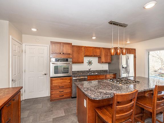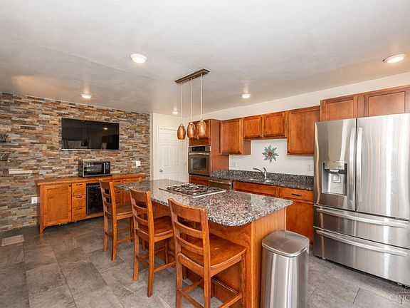 - Features: Counter Bar, Eat-in Kitchen, Gourmet, Kitchen Island, Marble/Granite/Slate, Pantry, Tile Floor, Walkout, Wood Cabinets