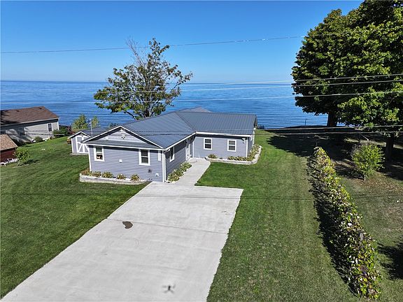 ***OPEN HOUSE SATURDAY 12-2pm** AMAZING WATERFRONT PROPERTY!! This custom LAKEFRONT CRAFTSMAN HOME was built from the ground up in 2019 with only the finest materials and craftsmanship! Taking advantage of the magnificent views and sunsets that only LAKE ONTARIO can provide! The WIDE-OPEN FLOOR PLAN includes a custom shaker style kitchen with island breakfast bar! Luxury Vinyl plank floors! Stainless appliance package! The sliding barn door opens to a huge walk-in pantry with room for all your small appliances and food for a year! The wonderful kitchen overlooks the GREAT ROOM that features volume ceilings and double patio doors with built in blinds surrounded by floor to ceiling windows with spectacular Lake Views! The Custom Electric Fireplace with brick surround completes the picture! Plenty of room for all on the new LAKESIDE PORCH with stone pillars and beamed craftsman gable end! Wood Ceilings with large fan and recessed lights! MAIN BEDROOM SUITE with waterfront views through the wall of windows! Private bath with glass enclosed shower and large vanity with solid surface sink! FULL BASEMENT for storage! Concrete driveway! Stairs lead down to the stone protected shoreline! There are 2 deeded boat launches at each end of the street!! Property has been recently field measured and square footage is 1,328 Sqft. Delayed negotiations - please submit all offers no later than MONDAY OCTOBER 13th at 11 am!