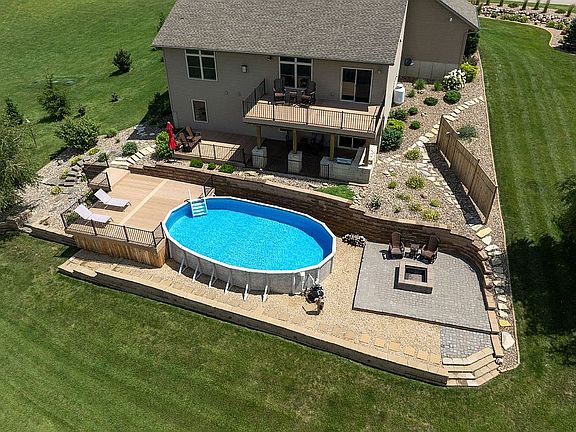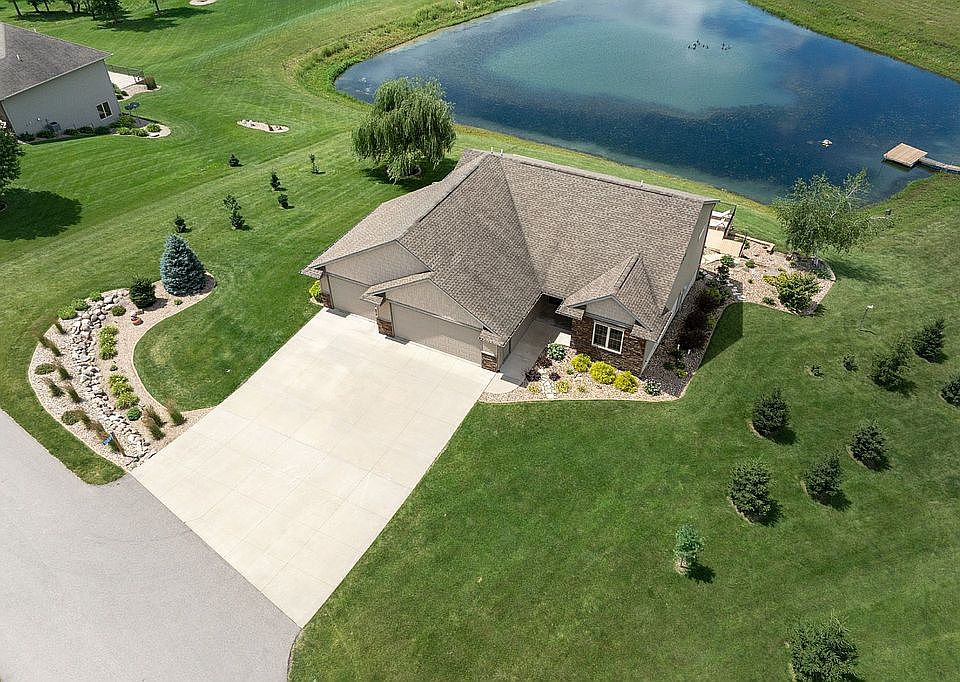 Welcome to your dream retreat nestled in the heart of natural beauty and luxury. This meticulously crafted home offers the ultimate in entertainment and relaxation, featuring a state-of-the-art 3D projector in the theater room paired with powered movie theater seating for an unparalleled cinematic experience. Step outside to discover three composite decks, a stamped concrete patio, and an outdoor kitchen adorned with limestone from Stone City, perfect for hosting gatherings or enjoying quiet evenings surrounded by breathtaking sunsets. Embrace nature with a stocked community pond for fishing and abundant wildlife including deer, eagles, owls, turkey, geese, and ducks, ensuring endless entertainment and serene views. Whether you seek tranquility in nature or the thrill of modern amenities, this home seamlessly combines both in a setting that feels like a year-round vacation. Call today for a private showing!