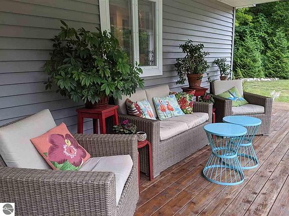 Stunning home on Old Mission Peninsula. Farm house with contemporary flair. Beautifully updated and meticulously cared for. Ready to just move in and make it yours. 4 large bedrooms and a dedicated office too. One bedroom and full bath on the main floor. Very large yet warm and cozy kitchen. The Wolf range makes it a real cook's kitchen. Stunning 5+ wooded acres and no HOA! Gorgeous perennial gardens and naturalized areas for easy yard maintenance. Wooded country setting with the convenience of natural gas and high speed internet. Second garage, heated with workshop. Zoned A-1 this is the property you've been looking for for home, business, gardening, chickens, many other possibilities. Very private, adjacent parcel to the west is Land Conservancy. Won't be built on.