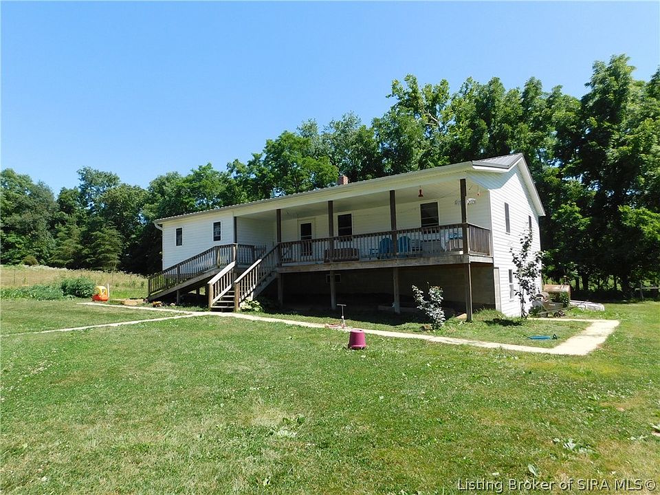 MINI FARM WITH 8 ACRES!! Fenced land for your horses or livestock.. 2016 AMISH BUILT home with 1472 sq. ft., 2 Bedrooms and open floor plan that you can finish the way you want. Full unfinished walkout basement that could be finished with many more bedrooms if desired. 32 x 8 Covered front porch with ramp and 8 x 8 back deck overlooking one of 2 creeks that flow through the property. 24 x 48 newly built barn with 2 stalls but room for several more and it has 2 12 x 32 lean to's. Several fenced pastures! Also would be a great recreational property with 3 Acres of woods in the back for trails. Nice circle driveway and large garden area and chicken coup.. City water back to the house, electric at the road, well on the property. House sits way off the road for privacy. Convenient location just off Hwy 56 and 7 miles to I 65.