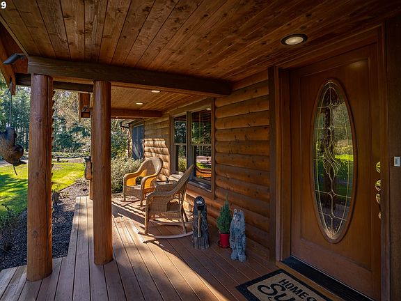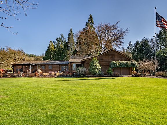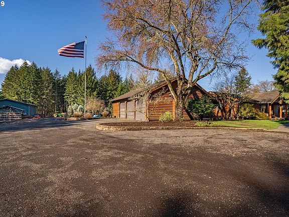 Charming one level log built home right in the heart of wine country! Excellent location only minutes to downtown Newberg, shopping, coffee shops, restaurants & wineries. Vaulted ceilings, lots of natural light and gorgeous valley views! Many upgrades to the home and land, see Amenity List. Self sustainable home with dual heat and hot water sources. Large 40'x 60' shop & concrete RV pad. Office could converted to 4th bedroom.