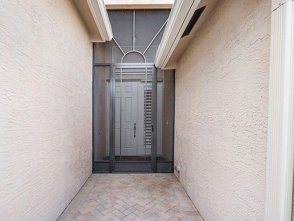 Looking for the perfect home? Luxury living in this prestigious GL community. 2 Bdrm + Den, 2 Bath beautiful home on private water view lot. Sunny, bright, spacious interior with Plantation Shutters and oversized Porcelain tiles throughout. High ceilings with recessed lights accentuate the airy atmosphere. Upgraded kitchen includes Granite counters & SS appliances elevate the culinary experience. Primary Suite with walk-in closet and stunning bathroom with dual sinks, granite counter & oversized shower. Enjoy a beautiful view, tropical birds and privacy from the screened-in lanai. New A/C, New Tropical Landscaping, Newly Painted, oversized fully shelved 2 car garage; 7 mi to beach, close to shops & highways. Live the life of luxury within walking distance to clubhouse. Welcome Home!!!