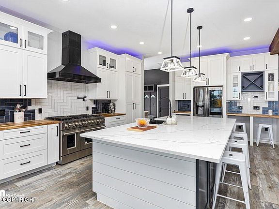 Stunning 5-bedroom, 4-bath retreat on 1.24 acres, featuring an oversized 3-car garage with 12-foot ceilings. Experience the epitome of luxury in the spa-like master bathroom. Delight in the warmth of radiant heating throughout and bask in the cozy ambiance of the beautifully set Quadra fire wood-burning stove while it creates an inviting atmosphere throughout the open floor plan. The impressive chef's style kitchen boasting a 48-inch range with oversized 5'x10' island, massive butler's pantry and abundant storage add both functionality and practical elegance. Outside, a vast landscaped grass yard complements stunning views of Mount McKinley, making this property a harmonious blend of comfort, style, and natural beauty. Seller say 52 minutes commute to JBER and one hour and five minutes to S Anchorage (makes the trip twice per week). There is a list of special features at the end of the photo section and also in the document section attached to the listing. Craftsmanship throughout, you owe it to yourself to check this home out!