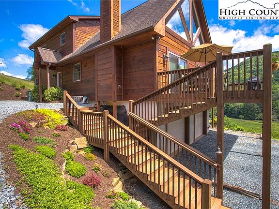 Exquisite 5 bedroom 4 bath custom luxury home on 11+ acres just outside historic Todd. The open-concept main level features a soaring tongue-and-groove ceiling, maple hardwood floors, fireplace & large windows that allow the light to flow in. Enjoy entertaining on the generous wrap-around deck which features both covered & uncovered areas. The large chef's kitchen offers granite counters, custom backsplash, stainless appliances, a 5-burner gas stove w/ down draft & hood as well as plenty of cabinets & a pantry. Master on main w/ ensuite boasts large walk-in shower. Also on the main is a secondary bedroom w/ access to the deck. Mudroom, laundry & a full bath complete the main level. The upper level features hardwood floors, 2 additional spacious bedrooms, full bath & large loft for an office or game area. Lower level offers a second living area including a full kitchen, bedroom, full bath & den. Oversized heated 2 car garage & work area is accessed through the lower level. Second flat building area available. Could be great short term rental. Carolina Cabin estimates this property would gross $50k-$60k yrly as Vaca Rental. Furniture negotiable. PLEASE SEE 3D TOUR
