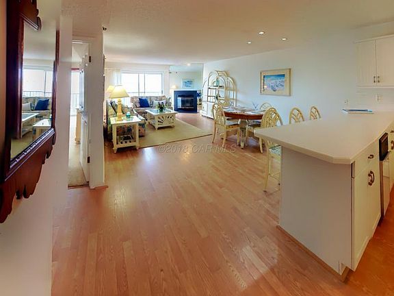 Enjoy sunsets on the bay from this bright and spacious end unit in North OC. Open concept with fireplace for those chilly nights, kitchen with large breakfast bar, sliders to waterfront balcony, and lots of windows throughout to let in plenty of light and water views. Large corner master bedroom with access to balcony overlooking the wide canal and bay. Two more large bedrooms, one with it's own private balcony, provide plenty of room for friends and family. Outside shower, under unit parking and elevator, community pool and boat slips available through association; all near the beach, restaurants, shopping and Ocean City attractions.
