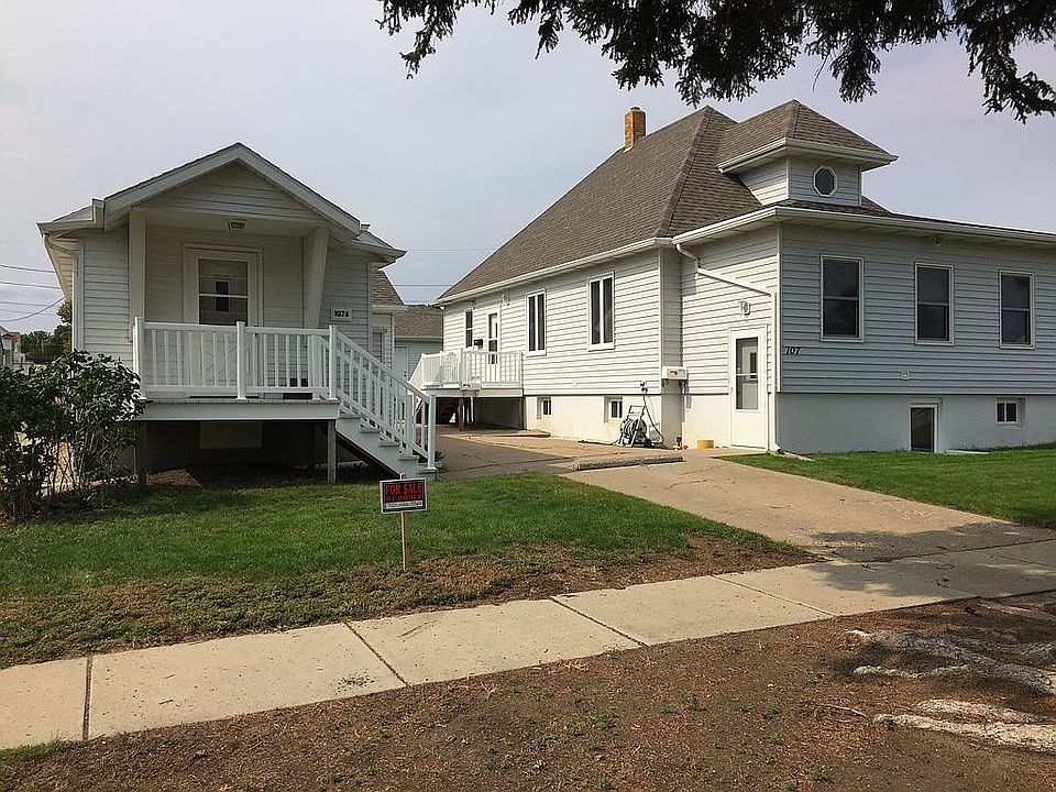Great Investment Opportunity. The large home has a kitchen, a large living room, 3 bedrooms (2 with walk in closets) on the main level with a full bath, with washer and dryer. There is a 3/4 bath on lower level for this unit along with storage. Newer kitchen cabinets with granite countertops and granite in both bathrooms. The lower unit has kitchen, 2 bedrooms, 1 with walk in closet, 1 full bath, and washer and dryer in the unit. Private entry from outside, new oak cabinets with granite countertops and granite window ledges, new oak doors and trim. There is a locked partition door that can be unlocked and opened making it a 5 bedroom home if you need it. Newer 92% efficiency furnace, and air conditioner installed in 2006. Utility room has lots of storage, along with a double tub sink. All windows but 2 are maintenance free vinyl windows. The smaller home is well insulated, contains 2 units, upper/lower. Both have own freestanding heat source, wall unit air conditioner, 3/4 bath and stackable washer/dryer. The main level has granite countertop in kitchen and bathroom and granite window ledges and maintenance free windows. Lower level has original hopper style Anderson window built into block walls, and newer oak kitchen cabinets. The 3 stall unattached garage consist of 2 heated stalls with insulated walls and ceiling with a propane forced air heater connected to a paid for 125 gallon propane tank, two door openers on insulated overhead doors, lots of outlets, 1-220 volt outlet and extra lighting all on a separate meter for the entire building. The single stall with a 9x8 ft overhead door and 2 storage units (non insulated). All three buildings have steel siding and were re-shingled in 2017. Garage built and both house foundations built approximately late 60’s to 70’s.