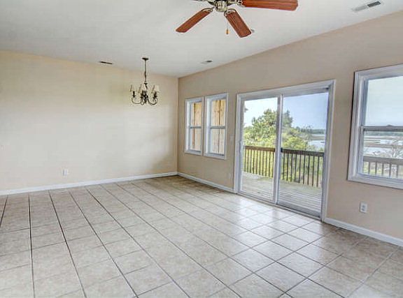 This great 5 bedroom 4 bathroom duplex has fantastic views of the Surf City Sound, Sunsets, and Swing Bridge of Topsail Island. It also is located close to the center of Surf City making a pleasant bike ride to all the shops and restaurants. The first level has three bedrooms and two bathrooms, including one master bed/bath. The second level holds the living area, dining area and kitchen, as well as a secluded bedroom & bath which makes it close to a master set up. The third level has a master bed/bath with views of the ocean. Washer and dryer hook ups are available on the first level in a separate closet.