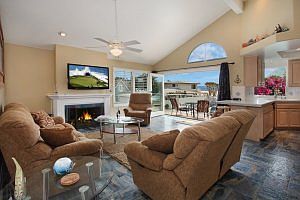 <p>SIT DOWN OCEAN VIEWS in one of the most coveted locations on the Balboa Peninsula. This 3 bedroom, 2 1/2 bath home is on the ocean side of Balboa Blvd. just steps to the beach and boardwalk. The home is extremely light and bright with a cozy fireplace, vaulted ceilings and skylights throughout. Newer features include stainless steel appliances, accordion door to balcony, plantation shutters, recessed lighting in kitchen, large flat screen TV, mirrored closet doors with built-ins, front door and roll up garage door. Master bedroom features a walk-in closet, double sink and spa tub. Separate laundry room on bedroom level, retractable awning over balcony, outside shower and attached 2-car garage. Undergrounding of utilities has been paid in full! This home is being sold completely furnished. </p><br />