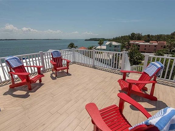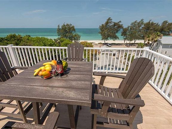 Views, Views, and More Views - Stunning and luxurious beach house! A few flip-flop steps to the soft white sand on Anna Maria Island beaches. Views of the beach and bay with access to boating and fishing. Walk to Bridge Street and the fun shops along Gulf Drive. This property is a SOLID vacation rental: 2018 income was $169K, and $180K booked so for 2019. Fish off the community dock, just a block away, or tie-up your boat for daily use. There is a 3-car garage with ample space for beach and water toys. Relax in the private pool with a gorgeous waterfall and then unwind in the spa. Take in the expansive views from the multiple elevated decks. From the 400 SF rooftop deck you'll be privy to an amazing 360? vista: the Sarasota skyline to the South, the Skyway Bridge to the North, the Gulf of Mexico to the West, and the Intracoastal to the East. Take the elevator to the top floor which boasts a wet bar with wine cooler and ice maker. Property is offered Turnkey furnished!