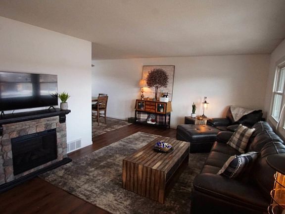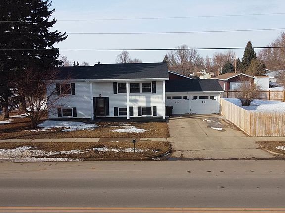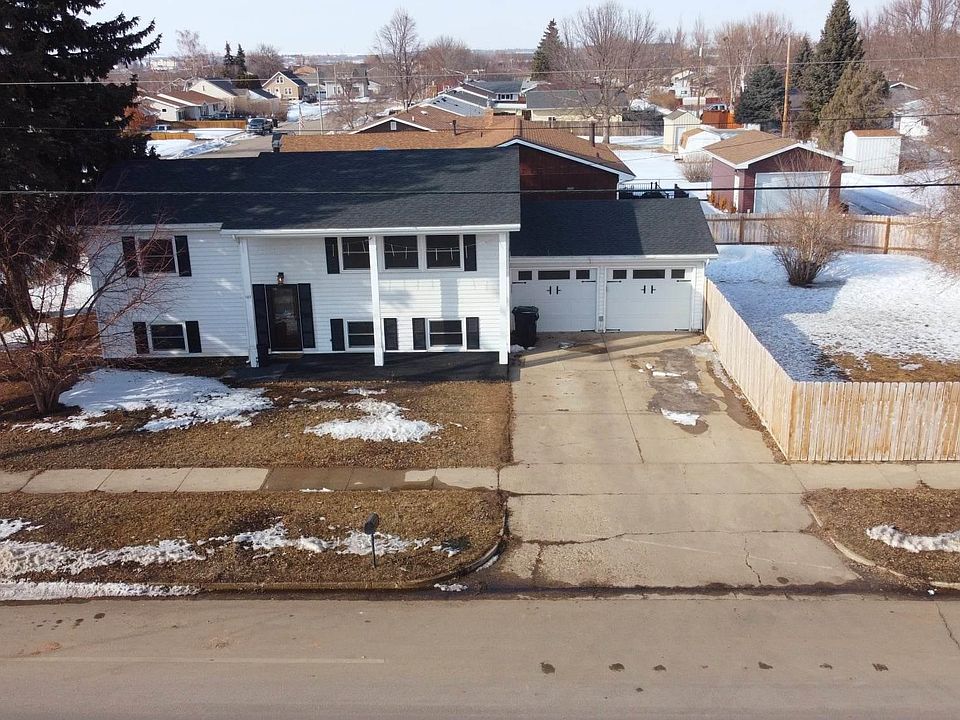 Presenting this gorgeous home on a corner lot right in the heart of Williston! Newly renovated with fresh paint throughout, recently updated bathrooms and flooring, and new windows and new roof done in 2021! Close to some of Williston's main attractions, this home welcomes you with a grand entrance from the pillars that complete the front view, entering into a beautiful split-level entry way. Complemented with living rooms and kitchen areas on both levels, it is designed to fit your needs through-out with each of the 4 bedrooms having ceiling fans and big windows that welcome in natural light. You will be happy to find 2 bedrooms and a full bathroom on each level and the downstairs living room is complete with a built-in theater area that hosts a 65 inch TV and a fireplace that both stay with the home. It is great for gatherings or just a quite movie night! The flowing concept makes it easy to get to any area of the home and the large, fenced yard makes it worry free, easy and enjoyable for your kids or pets to have a safe place to run and play. Call your agent for a tour today!