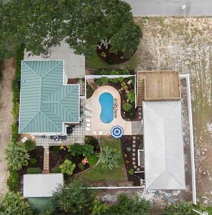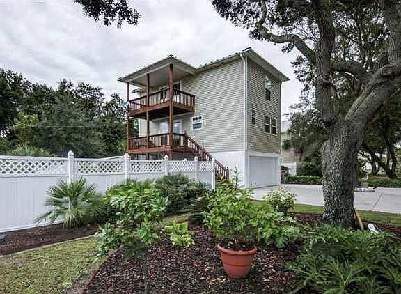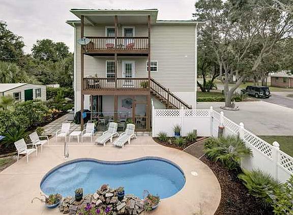 Walk into this fenced yard and you've truly walked into paradise! The main house is a 2 bed/2.5 bath, 3 story w/ 1404sq ft Heated & cooled. Hard wood and tile floors, large kitchen island ,even an office space for the days you have to do work! Both bedrooms have good closet space on the 3rd level. Decks on every level! The detached guest suite is 810 sq ft, full kitchen,living space, bedroom and 1/2 bath. A private outdoor shower with hot and cold water is right outside! This is a fabulous space for parties or visiting guests! The yard is to die for with fantastic landscaping and saltwater pool. Brand new heat pump installed in 2015, all new appliances (2014-2015). This home is meticulously maintained! Only about 300 ft to the beach, also walkable to city parks! Being sold fully furnished, a truly fabulous,unique home!