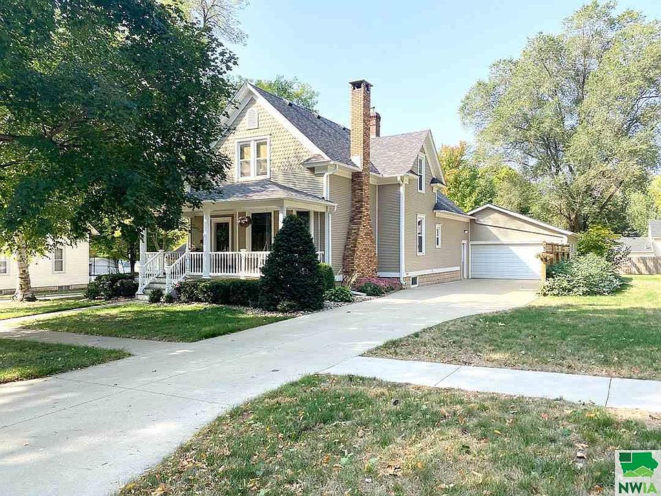Style & Class meet you as you step into this charming 2 story home nestled in the heart of downtown Sioux Center. This home has been meticulously cared for and is filled from top to bottom with memories! Spacious yard, welcoming front porch, established trees and landscaping, and a beautiful brick chimney are a few things you'll fall in love with! So much to enjoy, the main floor is functional and filled with character. Spacious living room with wood burning fireplace, gorgeous mantel, and open staircase. Kitchen is cheery with daylight and a peninsula island with bar seating, all appliances included. Dining room, open stair case to basement, office or bedroom, main floor laundry, built-in desk, and spacious full bathroom with double vanity. Original woodwork, newer windows, vinyl siding, maintenance free porch and a large wood deck with fire oven. Upstairs boasts 3 bedrooms, ½ bath with nice size closets. You really need to take a step into the basement to feel the vibe! Exposed brick, built-in bar, spacious family room, it is the perfect place to welcome guest to enjoy the company and fun of the big game!