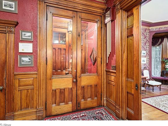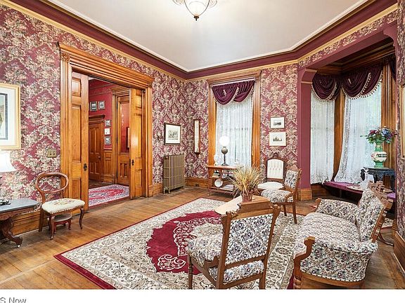 Grand and majestic Victorian! Currently being used as a B&B, the Russell House has been restored and renovated in a manner befitting its historical significance. This home has over 4,800 square feet of living space. As you enter through the vestibule, you will note the hand-carved staircase & fresco ceilings in the Foyer. A formal Parlor to your right & a grand Sitting Room to your left. An impressive wood paneled Library offers an intimate seating area with its gas fireplace, built-in bookcases & leaded glass windows. The formal Dining Room with stained glass windows offers an elegance of times gone by. With both a front and rear staircase, this 5 Bedroom, 3.5 Bath home gives you a glimpse of the past with its servants quarters off the main sleeping areas. All woodwork , stained glass and staircase are original. The detached Carriage House is also renovated with living space and very impressive. The 2nd floor offers a one bedroom efficiency apartment with full bath, inviting living room & galley kitchen. It has a modern two car garage with workshop area & the lower level still houses the original horse stables. This home is perfect for someone who appreciates craftsmanship and dreams of owning a historic property. Call today!