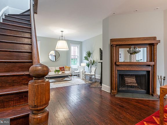 1st Open Sun 1/19 2-4pm. Bright 2 bedroom + den, 2 bathroom Victorian bayfront, aprox 1660sf per professional floorplan, boasts beautiful original stained glass and tall ceilings in a light-filled 2/2/2 (2 rooms per floor) layout. Entry level features spacious open plan living/dining area anchored by bold light fixtures, 2 fireplaces (one woodburning, one decorative, with TV above that conveys) and a wall of attached bookshelves. Lower level offers stunning and spacious Chef~s kitchen w/stainless steel appliances, breakfast nook, a flexible office/guest area, 1 of 2 full baths, and access to a charming rear patio. Upstairs are spacious front bedroom w/deep closet, 2nd bedroom, convenient large stacked washer/dryer, and beautiful bathroom with tub. Primo location steps to Eastern Market, 2 parks, and multiple Capital Bikeshares.