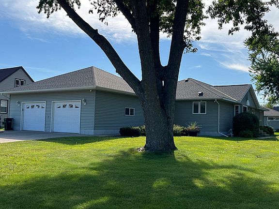 Come take a look at this beautiful home located on a nice corner lot with an excellent location that is walking distance to a church, public schools and grocery stores. This home features 3 main floor bedrooms with the ability to add more in the basement for future expansion. This home has a nice floor plan with great back entry with 1/2 bath and laundry area with lots of cabinets/storage. Kitchen is open to an eating area. Livingroom has a gas fireplace and looks out to the backyard with a large deck. Primary bedroom has a full bath with whirlpool tub and separate shower along with a walk-in closet. The basement has a big family room. New flooring in the kitchen, dining and laundry room. Lots of great features such as raised panel doors, steel siding and a small storage shed in yard. The garage is heated and insulated with floor drains along with hot & cold water. Make this home your next home.