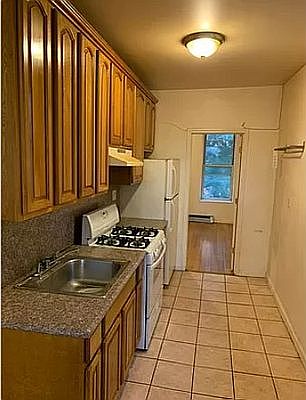 On the third floor of a brownstone building close to the Kingston Ave C train, this unit features two queen-sized bedrooms, living room, full bath, separate kitchen and full-sized bedroom. Combined $80K annual income and good credit history. Move in costs include the first month's rent, security deposit and brokers fee.