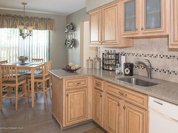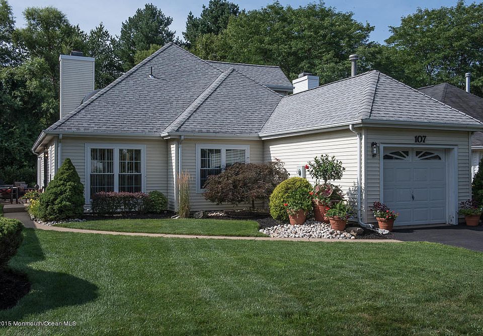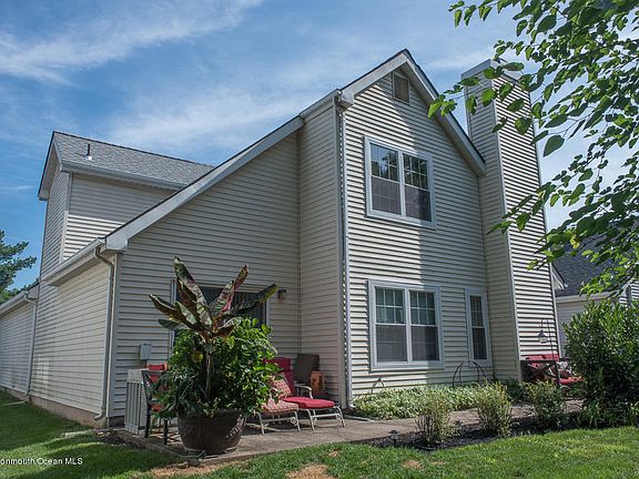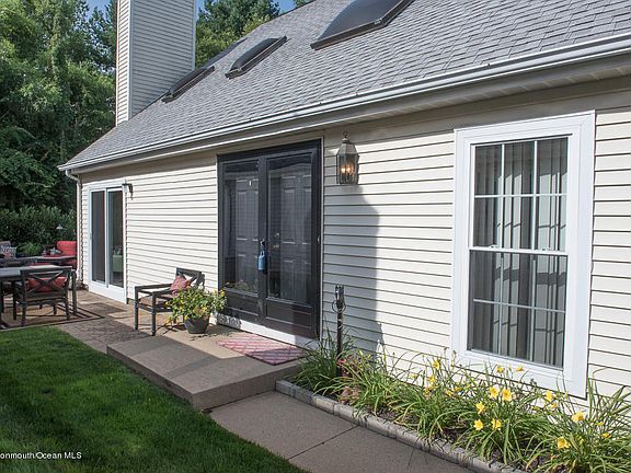 RAINTREE PATIO HOME WHAT A RARE FIND! This 2 bed, 2.5 bath Saxony model is the largest single family detached home available over 1600sq.ft. 3 generous outdoor patio spaces that are professionally landscaped backing up to trees. Updated eat-in kitchen boasts granite w/ stone back splash. Formal DR leads to the LR featuring floor to ceiling brick FP, vaulted ceiling, skylights and access to outdoor space. Master retreat w/ additional slider leading to patio has 2 closets, one walk-in & full bath. Upper level loft is 250 sq ft w/w carpet, renovated full bath, two over-sized WIC. Loft can be enclosed for 3rd bedroom.Raintree is a gated community that offers clubhouse, pool,9 hole golf course, tennis, fitness center, & walking path.Bus to NYC. Adjacent to shopping center, major restaurants.