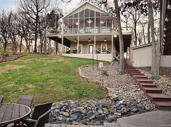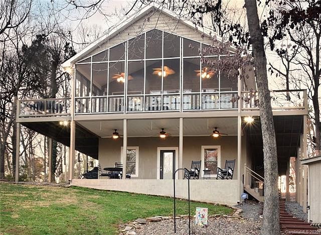 Beautiful waterfront home with so many amenities! This 3 bedroom (plus bonus), 3 bath home is located in a quiet cove. Newly remodeled kitchen with quartz counters, new appliances and custom painted cabinets. This home features cathedral and vaulted ceilings, 2 fireplaces and a Master with private balcony overlooking the lake. Lovely, large screened porch, perfect for entertaining or enjoying your morning coffee or evening glass of wine. Lots of outdoor decking and a covered patio. Newer HVAC, remodeled bath, commercial dehumidifier in basement. Solar path lighting leading down to your 1-slip boathouse with storage room and deck for sunbathing. New remodel hand rails and new side porches. New carpet on stairs. Remodel basement! New Fresh paint.