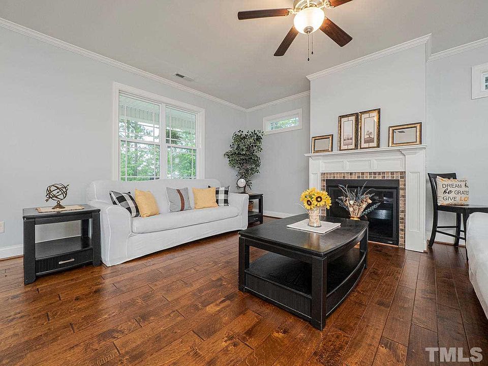 Gorgeous custom ranch in Anderson Park is a must see! New interior & exterior paint, 1st FL master w/ 3 closets & luxury master spa, Lg kitchen w/ 42" cabinets, granite countertops, SS appliances, & eat-in dining. Engineered hardwoods, plantation shutters, & crown molding throughout. Enjoy morning coffee on the covered rocking chair porch or a good book in the screened patio overlooking the flat, wooded backyard. No HOA, Lg storage in back, and convenient to shopping & dining in downtown Youngsville.