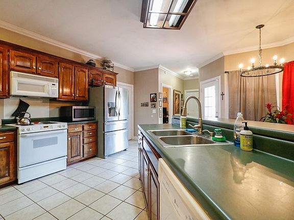 AMAZING FIND! Spacious home with 10 ft trey ceilings. Covered front porch & deck overlooking farm, work shop on slab w/ garage door. 8.9 acres includes a 40x50 horse stable w/ 4 stalls and 2 open bays, electricity, water & separate drive. Pasture, stone bottom creek, mature trees, Stormguard Tornado Shelter for 10-12, and a lagoon pool w/ tanning ledge and diving board built by MTM pools choose your liner! Tankless water heater. So much privacy and room for families & entertaining!
