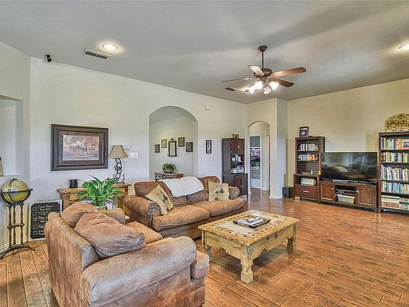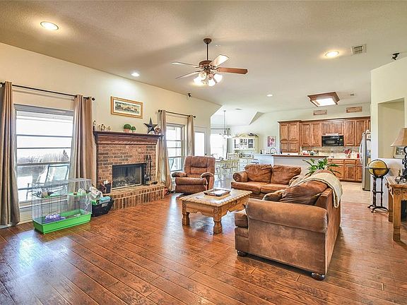 Beautiful 4 Bedroom, 2 Bath , w optional office on 1.28 acres. Large entry way , open concept, Living-Kitchen area. Spacious kitchen, many cabinets,large pantry. Large living room w wood burning fireplace. Spacious Master bedroom w large master bath and walk in closet, Laundryroom. 3 car garage, lanscaped,black pipe fence,brick home, cement driveway, lean to for horse, Aerobic Septic,Heat Pump. NEW ROOF and NEW WINDOWS throughout the entire house !