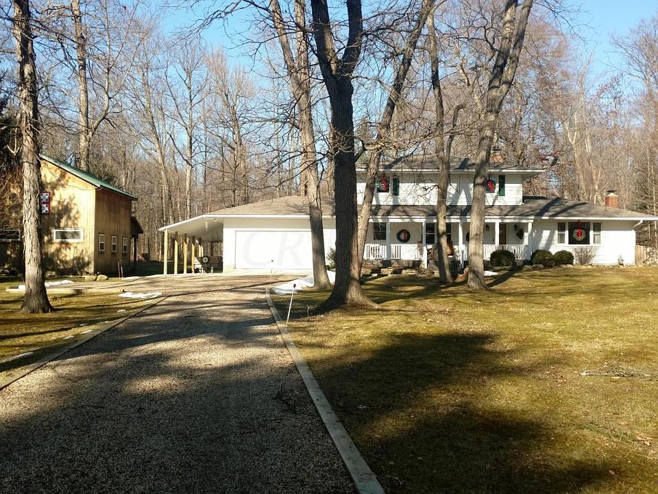 Tucked back in the Woods, on a Cul-de-sac sits this Meticulous 4bed/2.5bt 2 Story! Watch the Wildlife from the Expansive Front Porch or Rear Patio! Hardwood Floors thru out most of the house! Large picture windows allow for tons of Natural light! Updated Kitchen and Baths! First Floor Laundry, Fireplace, Rosati Windows, Finished Lower Level, Screened Porch, Stream, Pond, Fenced area for Vegetable Garden, Tree Swing, Campfire Ring, Patio, Newer Mechancials, Storage, Workroom behind the Garage plus a 20 x 24 Two Story Workshop! You will Love It! Homegard Warranty! Carole Henkel 614-403-5569