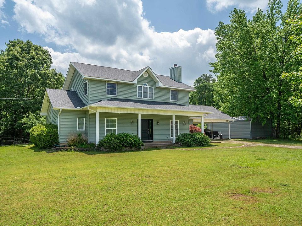 Live your country dream! This spacious 4-bedroom, 3.5-bathroom home is situated on 4 picturesque acres within a gated subdivision just 3.5 miles from Hot Springs city limits. The main level features the primary suite, kitchen, dining area, a cozy living room with a woodburning fireplace and a large laundry room. The second level offers a guest bedroom with ensuite bath and walk-in closet along with two additional bedrooms sharing a third full bath. Relax and observe deer and other wildlife from the screened-in back porch. Ample space for tools and hobbies with a 40’x40’ red iron frame workshop with 30 amp service and an additional 20’x30’ tube frame shop. A year-round creek traverses the property and you'll enjoy access to the stocked community lake with picnic area. Horses and other non-commercial livestock are allowed.