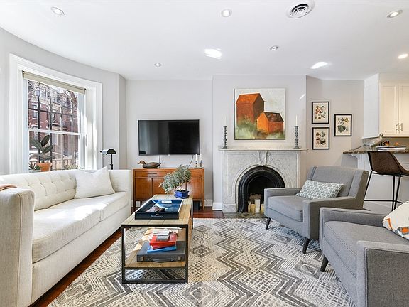 Charming 1 bed, 1 bath on sought-after Appleton Street in Boston's South End. This updated street-level home has an open floor plan with original marble decorative fireplace, hardwood floors, and recessed lighting throughout. The updated kitchen includes stainless appliances and granite counters. The updated bathroom is clad in marble and glass, with shower/tub. The spacious bedroom has attractive built-in cabinets and a glass french door leading to a private balcony. Laundry in-unit, central air, and space for a work-from-home desk, and private deck off the bedroom round out this lovely home. Appleton Street is located within the South End's Platinum Triangle, close to public transportation and all points of interest in both South End and Back Bay.
