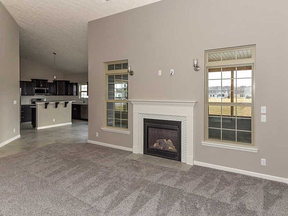 THIS BRAND NEW MAJESTIC HOME is located in the Hartwood Village subdivision in West Lafayette. The Theodore split bedroom floor plan features cathedral ceilings in the great room, & kitchen. Highlights include a large kitchen with an island & breakfast bar top, quartz countertops, stainless steel appliances, over and under cabinet lighting, and staggered cabinets open to the breakfast nook and large screened in porch. Additionally, the great room features a gas log fireplace, plant shelf, transom windows & opens to the Den, with hardwood floors, through double French doors. The luxurious Master suite is complete w/ tray ceilings, tiled shower, separate tub, dual vanities, pocket doors & walk in closet. Additional details include over sized 2 car garage, 16x12 screened porch leading to a 16x6 patio, covered front porch, front yard irrigation & so much more! The $1300 per year HOA provides lawn maintenance including mowing, weed eating, & yard applications.