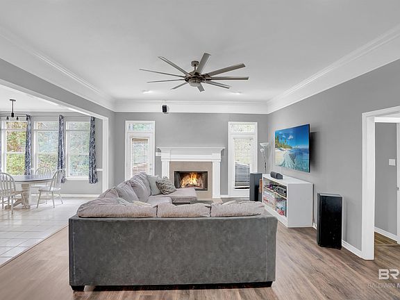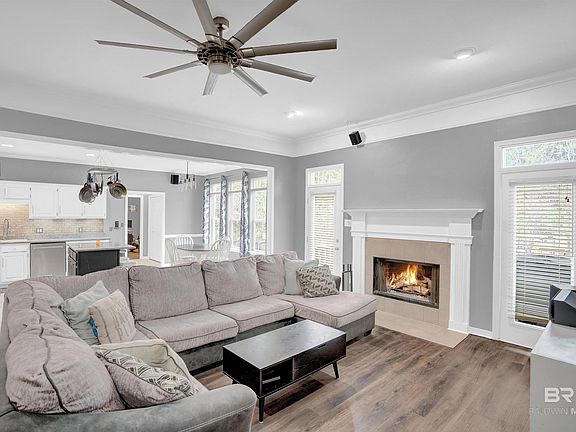 Cute 3 bedroom 2 bath home with a bonus room on a cul de sac in the beautiful Lake Forest community. With the lot backing up to the woods, this home provides the perfect blend of comfort and tranquility, allowing you to remain close to everything Daphne has to offer while simultaneously maintaining a reasonable level of privacy. When you walk in your eyes will be drawn to quite a few recent updates such as: fresh wall paint throughout the common areas - including the primary bedroom walls and the living room ceiling, freshly painted cabinets, a freshly painted front door, and the polyurethane on the primary bedroom floor was recently done as well. New railings were added to the back deck, and the entire deck has been recently pressure washed - bringing it to a like-new appearance for the next owners. Enjoy a relaxing evening at the fire pit out back, or enjoy the comfort of the interior fire place during the cooler months. Don't wait to schedule a showing today to see what this home and this community has to offer! Buyer to verify all information during due diligence.