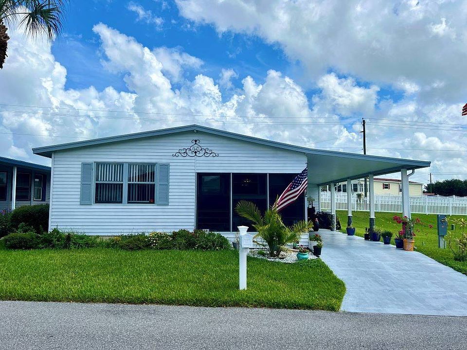 BEAUTIFUL MOVE-IN READY HOME WITH PLENTY OF UPGRADES!!! BRAND NEW A/C!! Huge open floor plan with vinyl plank flooring in main living areas. Guest bedroom has new carpet. Kitchen has been completely redone with granite countertops, new appliances, etc. Both main and master bathrooms have been upgraded with new vanities, toilets, showers, etc. Plumbing has been completely redone throughout home along with new subflooring. Exterior of home and driveway have been freshly painted. Other added features of this home include water softener system, sprinkler system, and a powerful generator. Inside you will find all drywall finishes. This 2-bedroom, 2-bathroom dream has no rear neighbors or neighbors along one side. Option to purchase golf cart for $5,000. **Home is sold unfurnished.** Lake Juliana Landings is a 55+ community located in Auburndale, FL. Two pets allowed. No aggressive breeds. Waterfront community with boat/RV storage. Nearby shopping, dining, and entertainment. Lot Rent $577. KITCHEN: 11 x 13 * Vinyl Plank Flooring * NEW Refrigerator - Samsung * NEW Range - GE (with Vent Hood) * NEW Microwave - Unknown * NEW Dishwasher - Maytag * Garbage disposal * White Cabinets * Granite countertops * Center Island * NEW & UPGRADED DINING ROOM: 12 x 13 * Vinyl Plank Flooring * Window Coverings * Chandelier LIVING ROOM: 16 x 21 * Vinyl Plank Flooring * Window Coverings * Ceiling Fan with Light HALLWAY: * Coat Closet LAUNDRY ROOM: 6 x 8 * Vinyl Flooring * Washer Hookup * Dryer Hookup * Cabinets * Located Inside - Off: Hallway MAIN BATHROOM: 6 x 8 * Ceramic Tile Flooring * Window Coverings * Single Sink * Walk-In Shower * Mirrored Medicine Cabinet * ALL NEW & UPDATED MASTER BEDROOM: 13 x 16 * Vinyl Plank Flooring * Window Coverings * Walk-In Closet: 6 x 6 (Built-In) * Chandelier MASTER BATHROOM: 6 x 13 * Vinyl Plank Flooring * Window Coverings * Single Sink * Walk-In Shower * Granite Countertops * Cedar Ceiling * ALL NEW & UPDATED GUEST BEDROOM: 12 x 12 * NEW Carpet Flooring * Window Coverings * Walk-In Closet: 5 x 6 (Built-In) SUNROOM: 10 x 14 * Laminate Flooring * Window Coverings * Located Off: Living Room FLORIDA ROOM: 11 x 11 * Vinyl Plank Flooring * Window Coverings * Located Off: Sunroom SHED: 11 x 14 * Concrete Flooring * Shelving EXTERIOR: * Vinyl * Single Pane Windows * Gutters * Carport: Single * Roof Type: Shingled * BRAND NEW AC: Unknown (2022) COMMUNITY: * Clubhouse * Swimming Pool * Laundry Facilities * Library * Fitness Center * Billiard Room * Shuffleboard Courts * Horseshoes * Boat/RV Storage * Waterfront - Lake Juliana * Gated The above information is not guaranteed. It is the buyer's responsibility to confirm all measurements, fees, rules and regulations associated with this particular park. This mobile home is sold "As Is" as described in the description above. There are no warranties or guarantees on this mobile home.