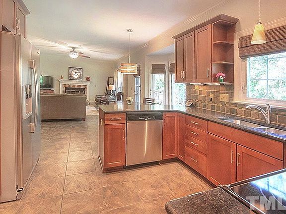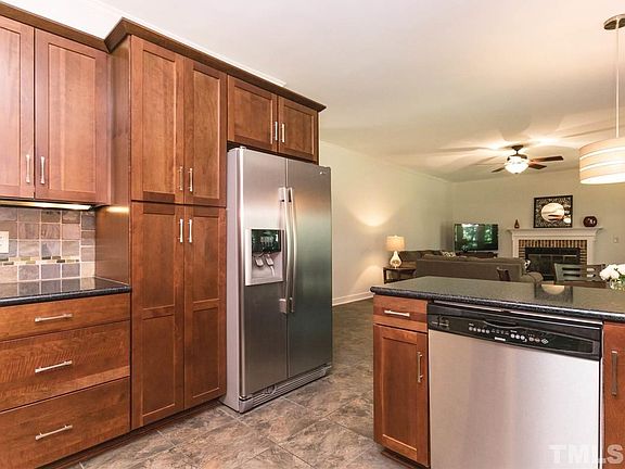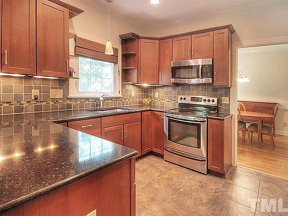 Beautifully upgraded & well-maintained home in Cary with quartz & granite countertops, hardwoods, tile & brand new interior paint & carpet throughout. Stunning 2016 complete remodel of Master Bath with new tile, granite, cabinetry, fixtures, beadboard trim & more. 2013 Rheem HVAC, replacement windows throughout, new exterior paint in 2012, deck, flat backyard that backs to trees & a rocking chair front porch. Great central location within a half mile of Bond Park, shopping & near excellent schools, too.