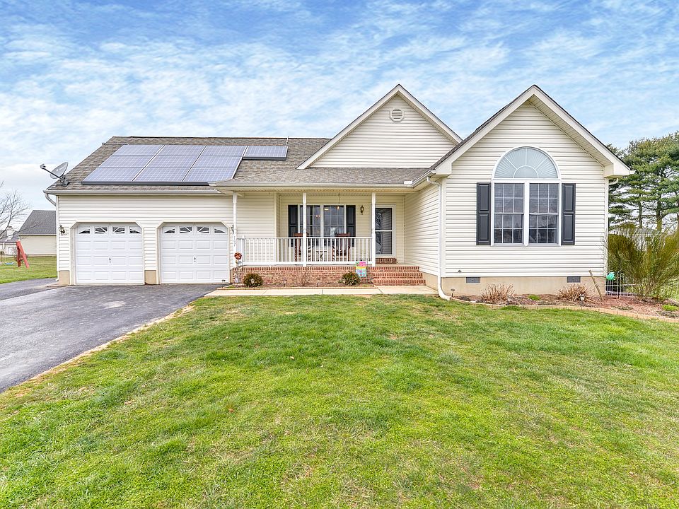 Well maintained ranch in desirable Dogwood Village...One floor living. 3 Bedrooms, 2 Full Baths. Open floor plan with bamboo floors in every room. Cosentino counters, Solar Panels, Tankless Water Heater and skylights, Public water/sewer. Covered front porch and over sized 2 car garage all on a landscaped cul-de-sac lot. .38 Acre. Underground pet containment fence. 100% FINANCING AVAILABLE!!!
