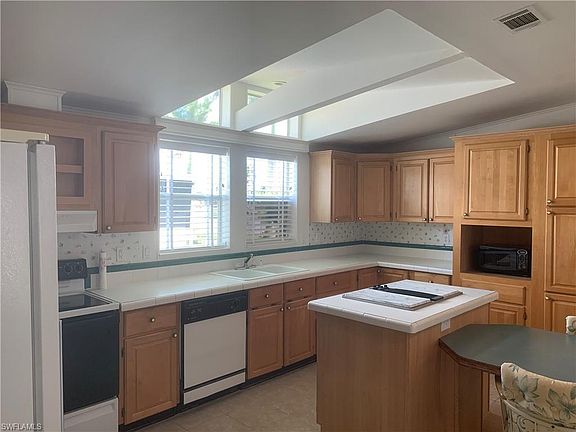 Stunning waterfront views at Highly desirable Riverwood a 55+ Community attached to Rookery Bay Estuary with boating, kayaking, paddle boarding, canoeing and world-class fishing right out your back door. Riverwood residents have access to a private community fishing dock and boat ramp. 20 minutes to the Gulf of Mexico, Marco Island and Downtown fifth Avenue shopping and dining. This huge 1847 square-foot palm harbor home built in 1996 has Contemporary floor plan. Newer roof and AC. Just painted. 3 Bedrooms , den with wood-burning fireplace. 2 full baths one with walk-in tub. Extra large sunroomWith spectacular water views and attached garage with workshop. Deeded property.