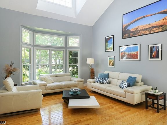 Stunning, updated and sun-filled home with a one-of-a-kind totally private backyard! Imagine lounging on your oversized composite deck with no one in sight, enjoying nature views while still experiencing all the conveniences of The Hills! The open floor plan features dramatic volume ceilings, tremendous natural light, and hardwood floors throughout. A granite and stainless Kitchen opens to an expansive Family Room and Deck for easy entertaining inside and out. 3 full updated Baths. 4 Bedrooms include a luxurious en-suite Primary Bedroom and a 1st floor Bedroom that could also be used as an Office or Den. Great storage throughout and a 2-car garage with a double wide driveway for extra convenience. Professionally painted, newer roof, and in stellar condition, this home is move-in-ready! Enjoy easy access to commute route routes, outstanding schools, numerous recreation amenities, and just a 30 minute drive to Newark and NYC in an hour!