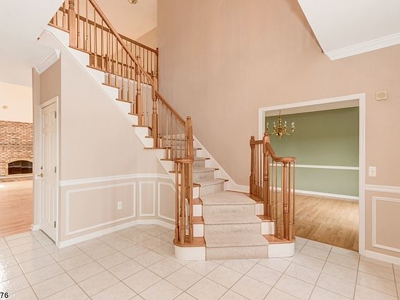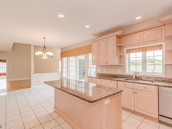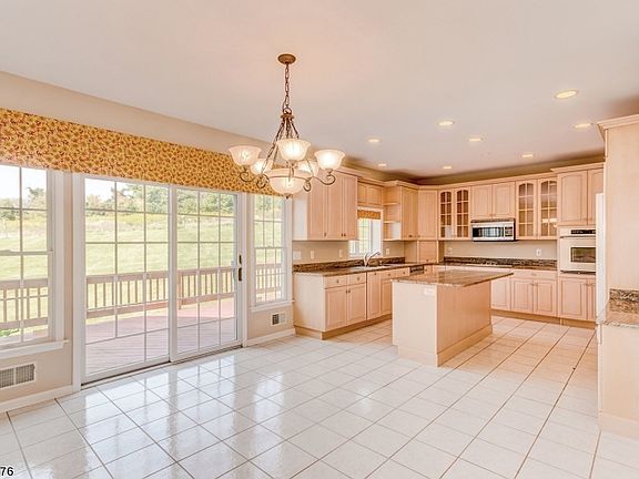 Beautifully maintained 5 bedroom 3.1 bath home on gorgeous 10+ quiet acres accessed by tree-lined driveway. Quiet location, still close to all the amenities of Flemington. The home opens to large foyer with a winding staircase and spacious rooms throughout. First floor hardwood floors. Large eat-in kitchen features a center island, granite counters, ample cabinet space, recessed lighting, and sliders to the deck. Living room features a wood burning fireplace, and skylights. Crown molding. Open upstairs hallway overlooks the living room. Upstairs has 4 bedrooms plus additional bonus room with second staircase access. Master bed with dual walk-in closets. Master bath has jetted tub, double sinks, separate shower. Unfinished walk-out basement. First floor laundry. Near golf course