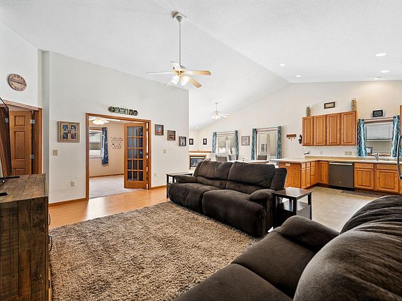 Spacious twin home located about 8 minutes outside of Menomonie in Knapp. Situated on a dead-end road, the home provides a tranquil setting. The home itself is designed all on one level, featuring an open floor plan with vaulted ceilings and a corner gas fireplace, creating a cozy and inviting atmosphere. With three bedrooms and two baths the home offers comfortable living spaces. The kitchen includes a pantry, providing ample storage for your culinary needs. The garage is finished and offers extra storage space above. One of the advantages of living in this twin home is that yard maintenance and snow removal are taken care of as needed. There is a monthly fee of $50.00 for this service, ensuring that you can enjoy a hassle-free lifestyle. If you have children, there is a playground area just a few lots away, which is part of the association. Overall, this spacious twin home offers a comfortable and convenient living experience with its open floor plan, scenic views, and amenities.