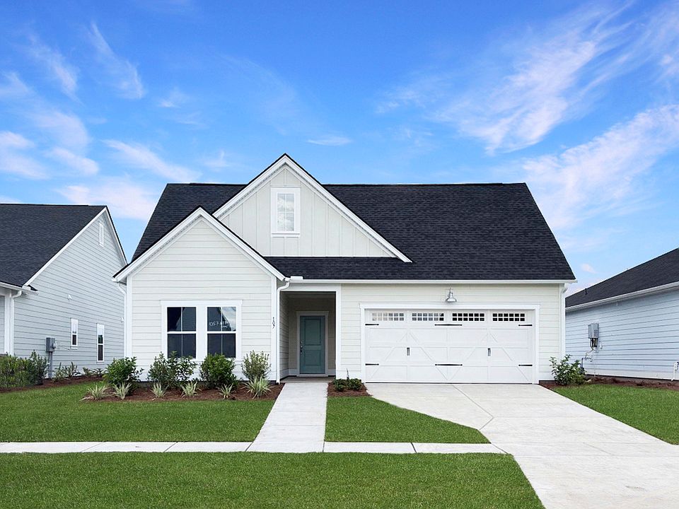This is a brand new, stunning 3-bedroom, 2-bath ranch-style home that will be available for rent starting September 1, 2025. This beautiful home features a gourmet kitchen perfect for culinary adventures, a cozy gas fireplace for those chilly evenings, and a luxury tiled shower that adds a touch of elegance to your daily routine. Imagine relaxing on your oversized screen porch, soaking in the serene view of the pond. This home is nestled in an active adult community, and is just around the corner from the upcoming Club with it's resort style pool, indoor lap pool, clubhouse with bar, gym, tennis and pickle ball! You also have full access to the Carnes Crossroads Agrihood farm, lake house, resort pool with waterslides!