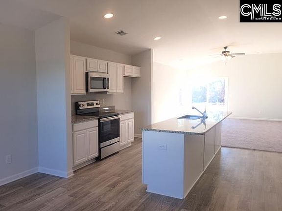 The Brunswick is an open concept one story home with beautiful vaulted ceilings, 3 bedrooms and 2 bathrooms. This home opens to a great flex space that makes a perfect dining area. It flows into the modern kitchen with grey wood grain vinyl floors, stainless steel appliances, great island, and white cabinets. The family room is right off the kitchen with a ceiling fan and is quite spacious. The master is tucked away at the back of the home and has a dual vanity, 5 ft shower, and large walk in closet. The two other bedrooms are quite spacious as well and have a nearby full bathroom. Check out this lovely one story home today!