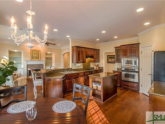Situated on one of the prettiest streets in Southbridge - this brick home in Savannah's most popular golf, swim, tennis & fitness community- overlooks a beautiful wooded backyard and the fairway. Custom-built with gorgeous wideplank hardwoods & breathtaking mouldings, your family will love the Southern grace & elegance this home offers yet still has a very warm feel. The lower level features a "secret entry" study, formal dining room & great room open to the tasteful kitchen w/rich mahogany cabinetry, granite & stainless appliances. The large master bedroom on the main features a sitting area & master bath with his/her separate vanities. The upper level will surprise you with 3 bedrooms, 2 full baths & large bonus room w/incredible views of the golf course. Plus there is a ton of walk-in attic storage. This area of Southbridge is very convenient to the front entry & just 12 minutes from Historic Savannah. This home does NOT require flood insurance & HOA dues are just $484 a year.