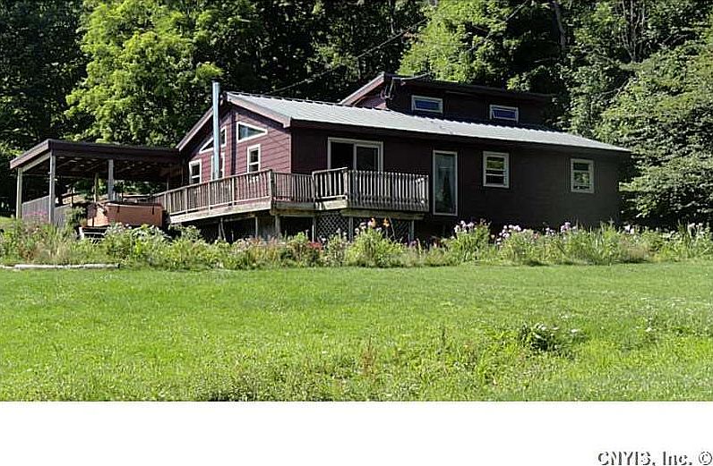 See this custom contemporary set within walking distance to Beam Hill State Forest or Dryden Lake hiking trails. The cathedral ceilings in the 26 x 44 Great Room, with a breakfast deck on one end, and a covered porch on the other. A south atrium surrounds the full bath. The third bedroom has a sleeping loft or playroom for the kids with access to a half bath. If you like the feel of a log cabin you'll love this home. This is a Country Lover's Dream in its design and location. Walk to Dryden Village and playgrounds, or head to the hills and lake.